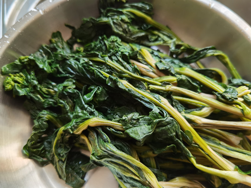 去年老爸老妈种了好多青菜,平时就拔了喂鸡吃,到了春季一夜之间,菜薹比雨后春算还来劲,遍地都是,回家就被老妈塞了一大包,用淡盐水浸泡,冷藏可以放一个星期,各种吃了一段时间,新鲜的还是容易坏,就焯水晒干保存,速冻的话,颜色也能保持碧绿,常温保存会发黄,但不影响口感,加点菜籽油,盐一蒸,省力好吃又下饭,别提多美了,这次尝试小炒,也很好吃。