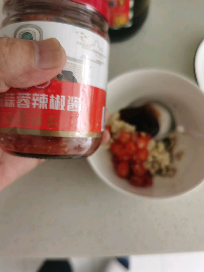 我这次用的是蒜蓉辣酱。你也可以尝试不同的酱:沙茶酱,某干妈等等,油菜也可以换成其他蔬菜,当然如果有肉酱更好,各种不同的配搭,就可以做出千变万化的嗞味。但是,基本流程不变,按我的菜谱做,不会太差的!