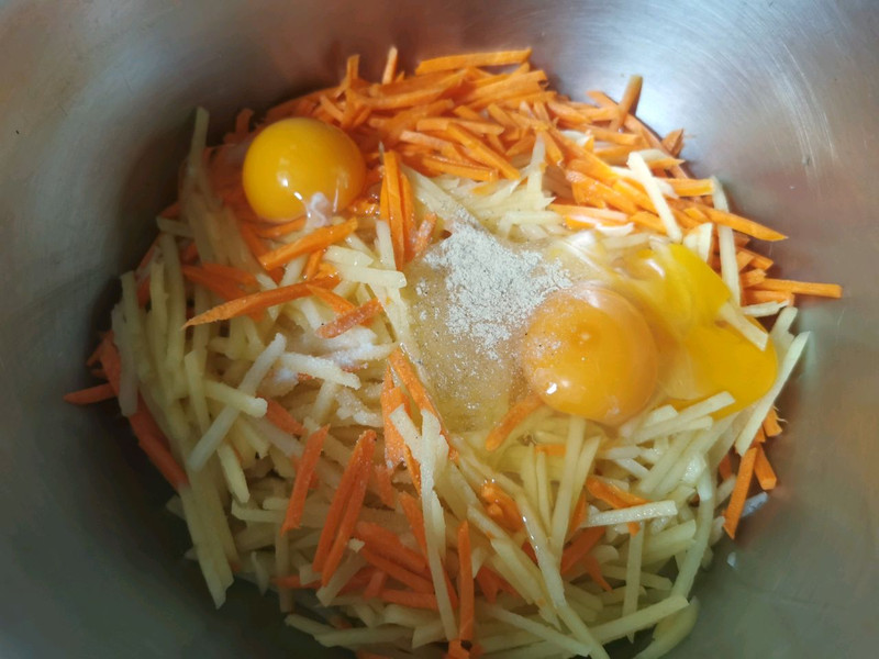 1.用于摊饼的土豆丝不需要洗去表面淀粉。