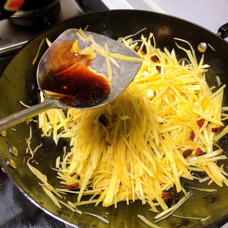 土豆丝切好要多点水淘洗干净 才不容易粘锅 吃起来也是脆脆的口感 超级下饭哟!