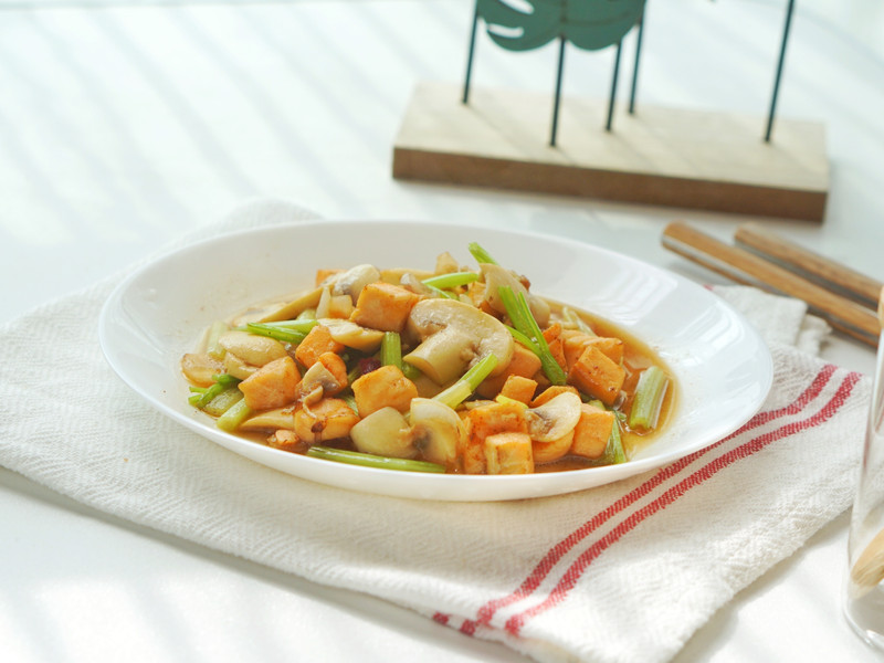 芹菜蘑菇炒挪威三文鱼
