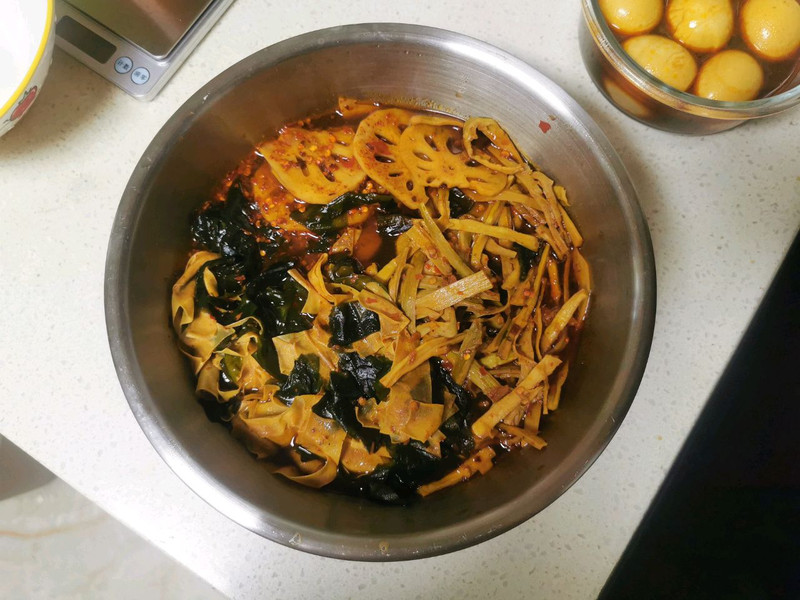3.泡好的卤菜也可以加蒜末、葱花、盐、糖、生抽、香油、花生米一起凉拌~