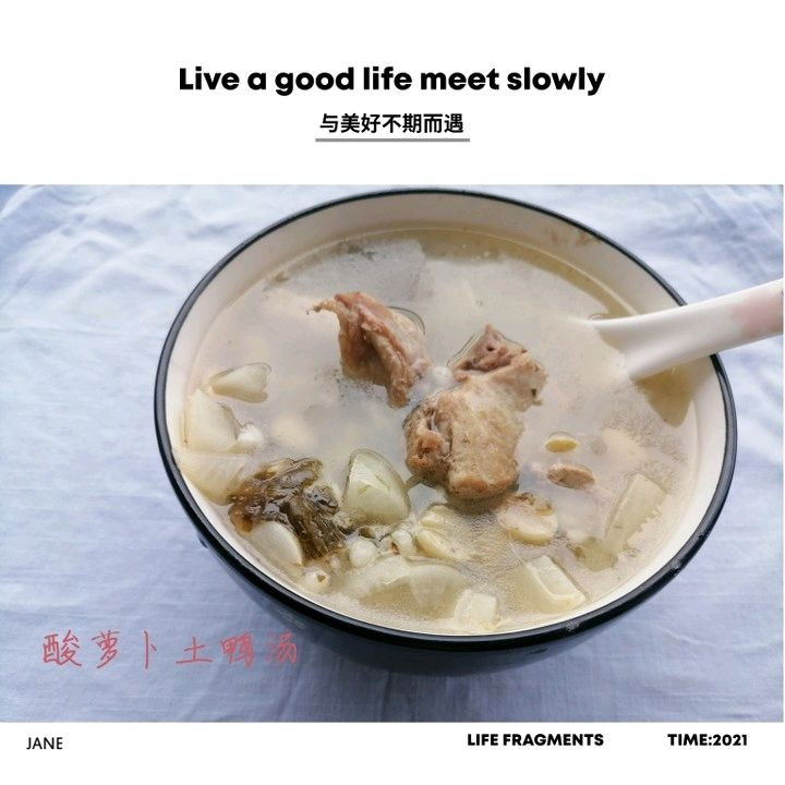 酸萝卜老鸭汤属于川菜系,主要原料当然是说萝卜和土老鸭啦。但是我还是决定用嫩一点的土鸭来做。怕太酸了,所以酸萝卜不敢放多;并且还要根据自己的想象,乱搭配料,乱炖一锅。