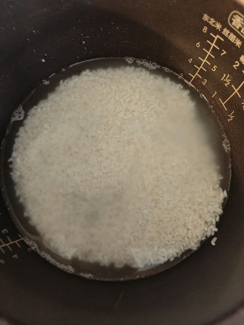 注意:米提前泡好的话,煮饭是要比平时放的水要少一些,才可以出来煲仔饭的感觉。