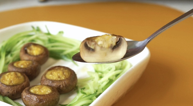 因为我烤箱比较小,所以这次做的少,一个鸡蛋可以填大概15个左右口蘑。