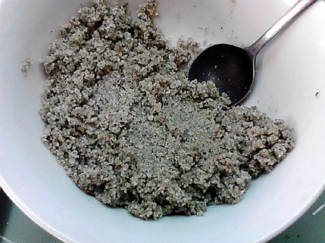 虽然是花生为主,但还是加了一点点黑芝麻做调配,口味会更丰富些。只是,这么点黑芝麻也让这花生馅颜色深沉许多,或许会被误作芝麻馅吧。