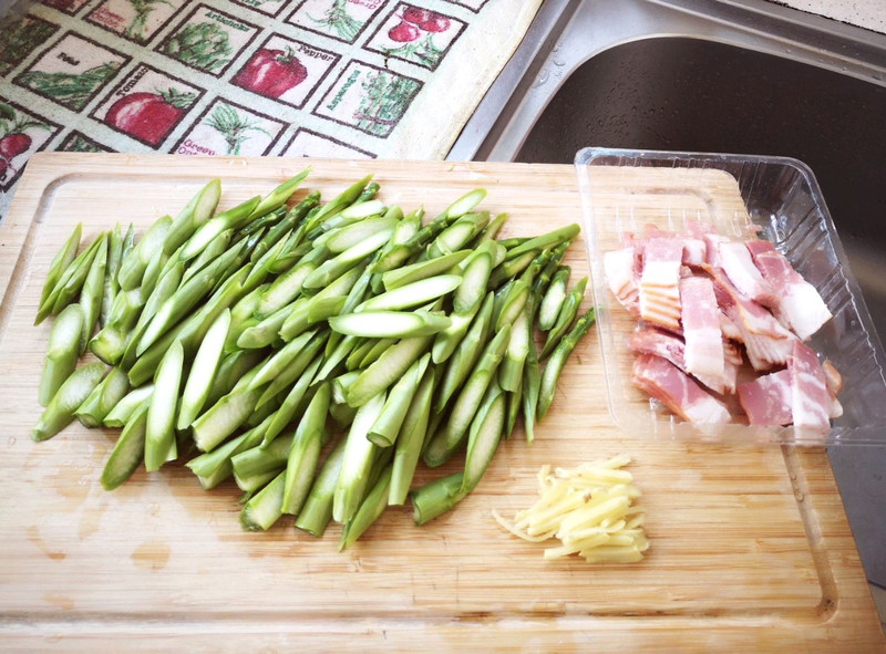 春天的芦笋嫩嫩的 培根芦笋十分的搭配 炒制在一起味道相得益彰…
