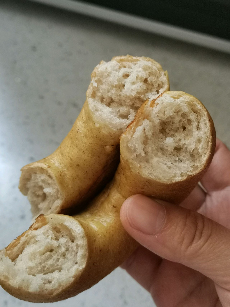 因为今天没想做食谱的,所以没有拍过程,只有面包的图片,请见谅,做起来吧,真的好简单,口味呢像中式的烤馒头,表皮特别有韧劲,越嚼越香。