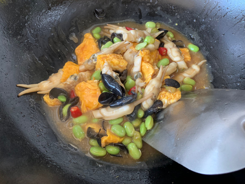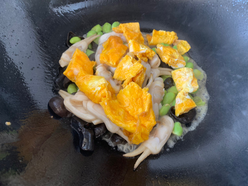蛏子和蛋液加入味达美葱姜料酒能更好地去除腥味,不过蛏子倒入锅中烧的时间不宜过长。