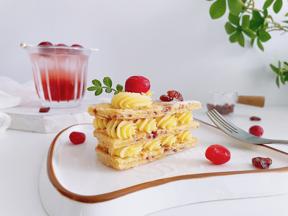 拿破仑蛋糕又被称为千层酥。此次选用美国蔓越莓等食材制成的拿破仑,使得酥皮之间的夹层口感丰富,食材组合新鲜及酥皮入口松化,酸甜甘香。不论是吃茶小憩,还是去户外感受大自然的神奇造化,和喜欢的一切在一起时都能让我们感受到夏日的确幸小“莓”好。蛋挞皮版更是易操作,话不多说,快来get这道超好吃的糕点,让美国蔓越莓为你记录确幸时刻,留下莓好吧~