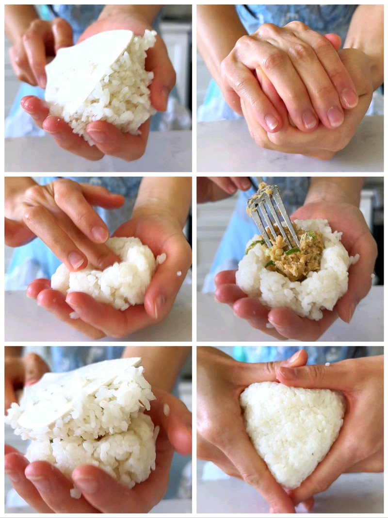 按压的时候不要着急,不要太用力,容易吧饭团挤碎!