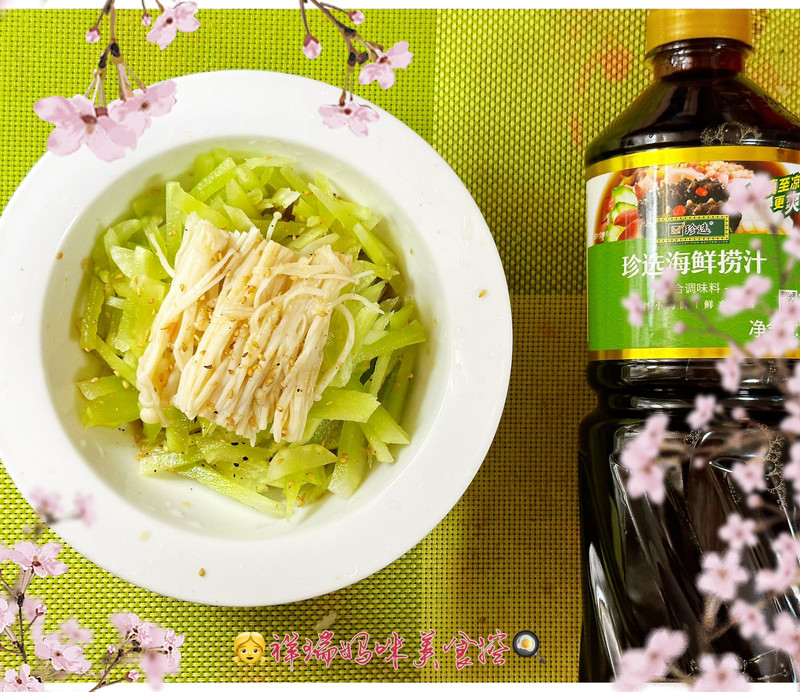 捞汁金针菇拌青笋的做法