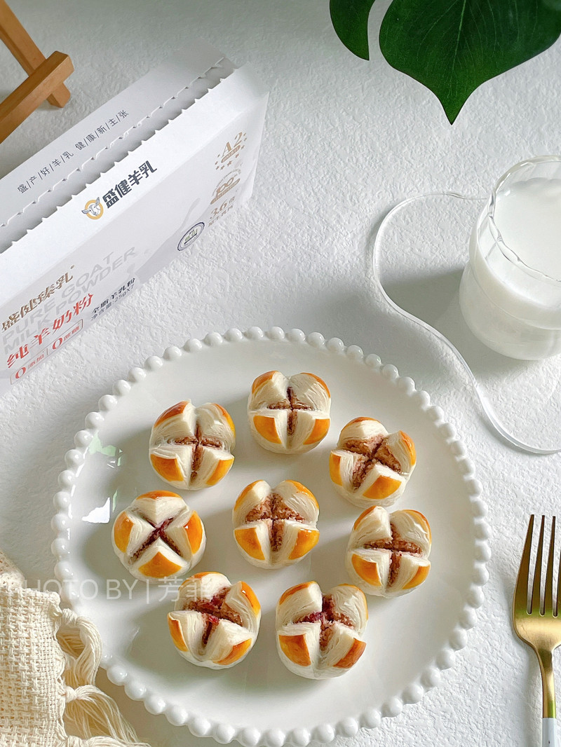 擀好包入椰蓉馅利用虎口轻推包起捏紧收口,将收口朝下间隔放入烤盘.表面刷两次蛋黄液中间割十字口,略微深一点.放入预热好的烤箱165°烘烤15~18分钟,上色开酥即可️.具体烘烤温度和时间按自家烤箱温差灵活调节迷你草莓椰蓉酥的烹饪技巧