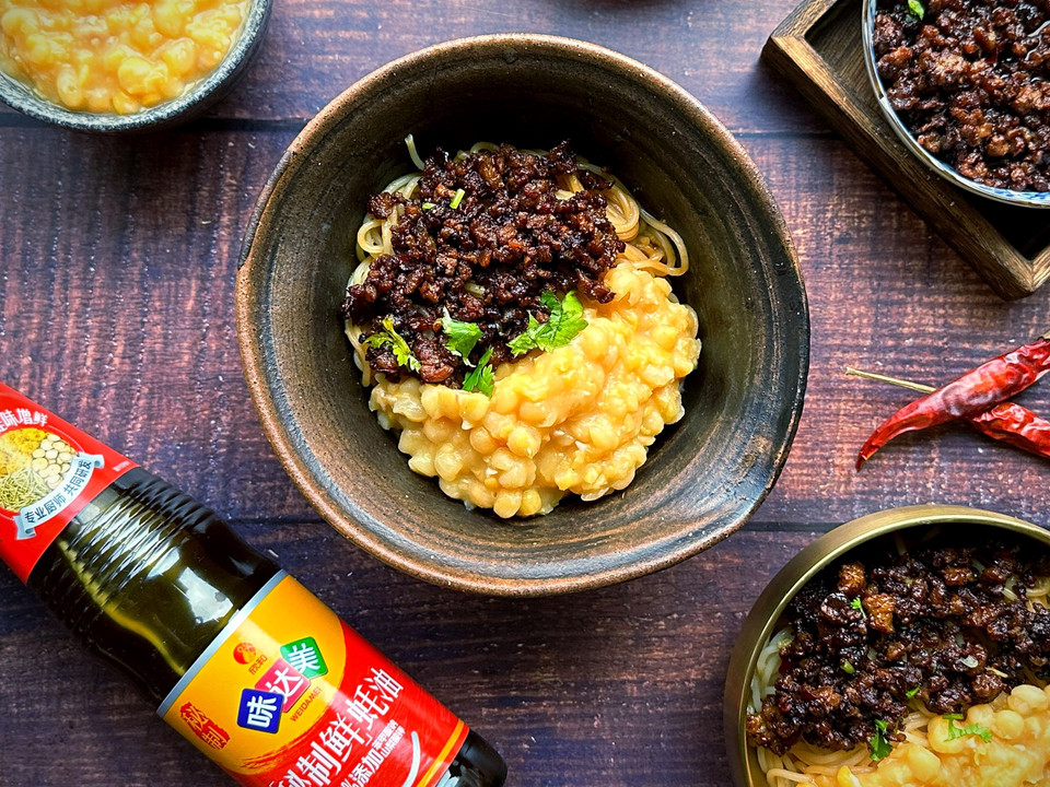 豌杂是指豌豆和杂酱,清香绵软的耙豌豆、喷香浓厚的杂酱,配上麻辣鲜香的碗底,二两面,一瓢豌豆汤,两勺臊子,再烫上一把新鲜的豌豆尖,辣得过瘾,吃得舒心。如此美味的豌杂面,也可以自己在家轻松复刻