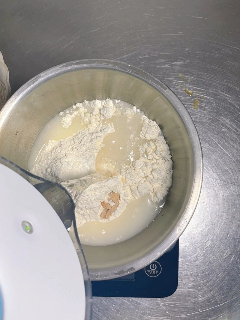 3、早上起来和面,300克面,150克水,1克酵母(我放鲜酵母,还放多了按照蒸馒头的比例放的有点发大发了),和匀后醒十分钟,揉一下分成六份,每个剂子再揉一遍,分别擀开,翻过来卷起,醒五分钟后,再依次擀开卷起,再从第一个开始按扁擀圆,烤箱预热190度烤15分钟