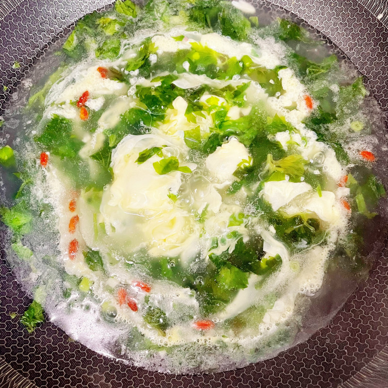 要快一点,别煮久了,要不芹菜叶变色就不好看了