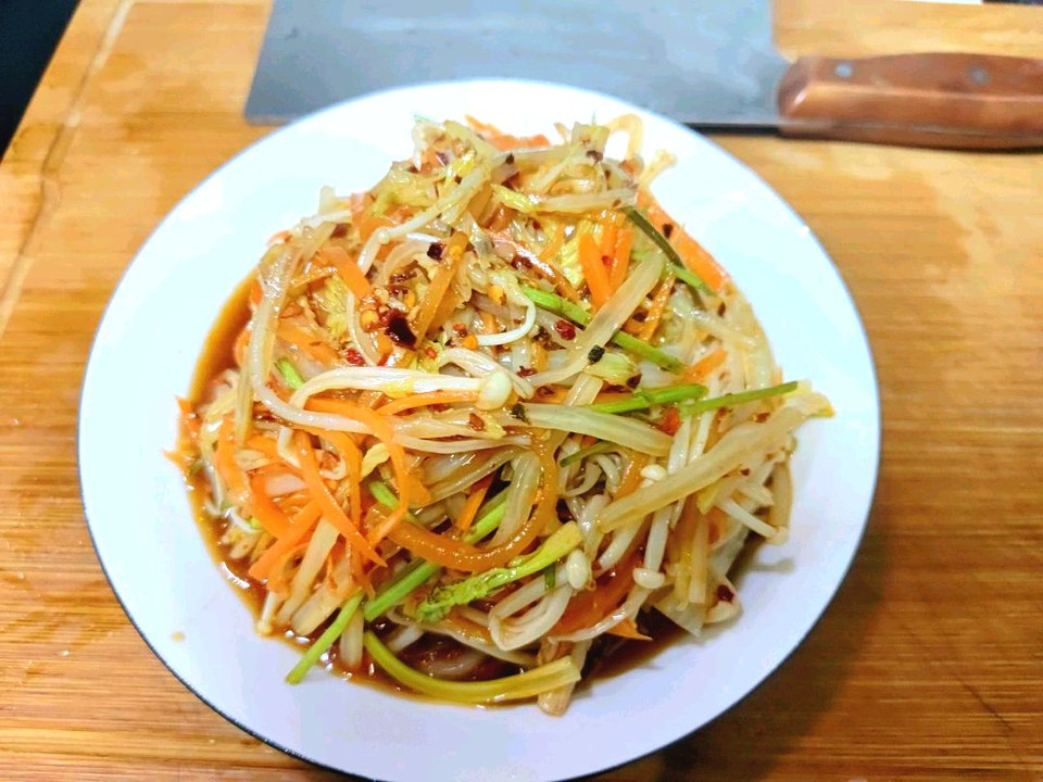 金针菇汆烫时间不能太长,不然就软踏踏的不好吃了。