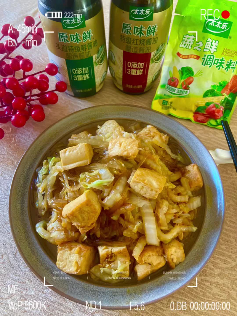 今天和大家分享一下我做的这道家常菜白菜粉条豆腐,做法简单,营养健康,我今天是素炒的没有放肉,有“太太乐”调味料的加持不放肉也非常好吃。