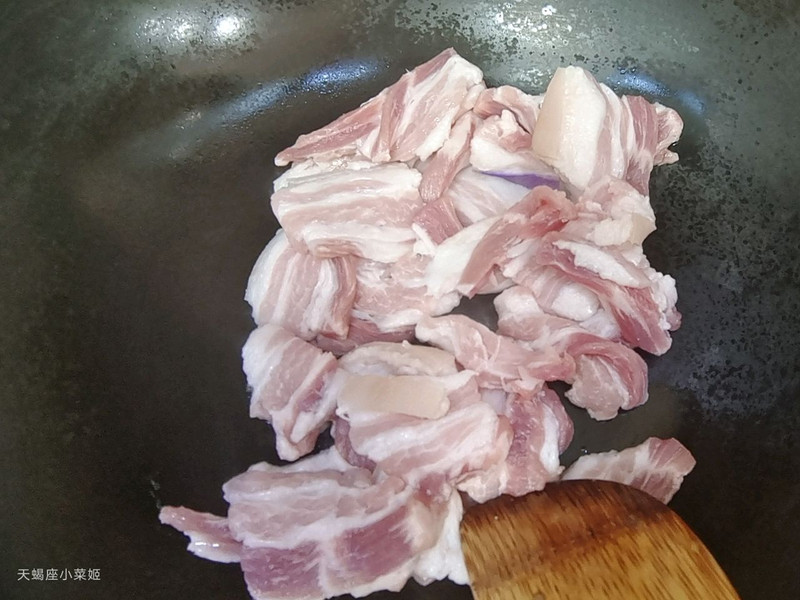1.五花肉下锅烙制,可以将剩余的猪毛和异味,去除。