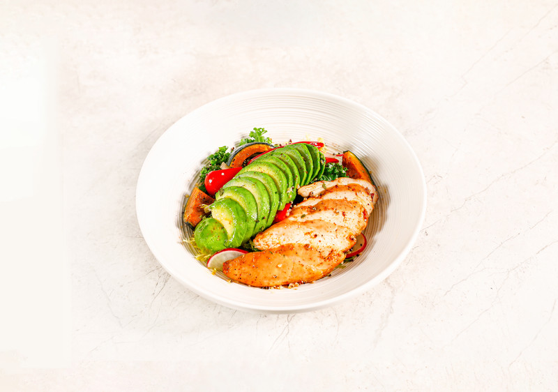 低温烹饪的鸡胸肉,克服了一般做法鸡胸容易发柴的毛病,更保留了鸡肉的原汁原味,和里外均匀的成熟度,口感细嫩。