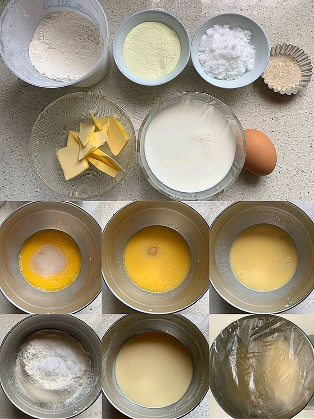 1、面糊放在24—26度发酵1小时左右,注意不要发太大、太久,会有酸味。也可以包上保鲜膜,室温发酵半小时,再放冰箱冷藏一晚。