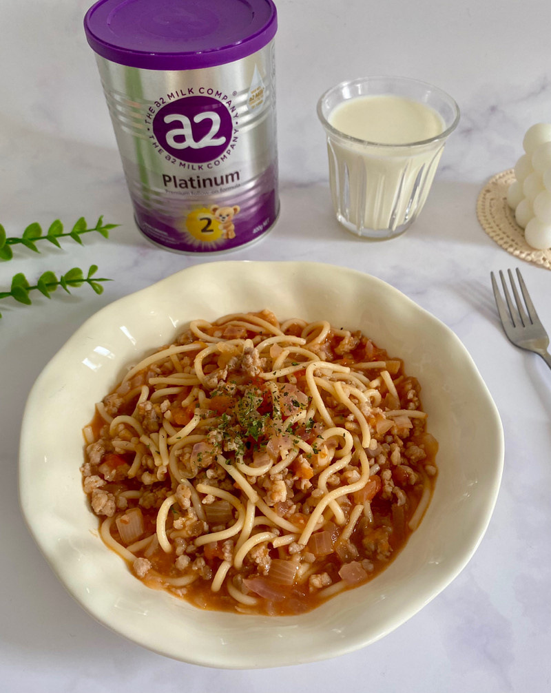 今天做了宝宝爱吃的番茄肉酱意面,酸甜可口,营养丰富,搭配一杯好喝营养的a2牛奶,营养满满,妈妈们快试试吧
