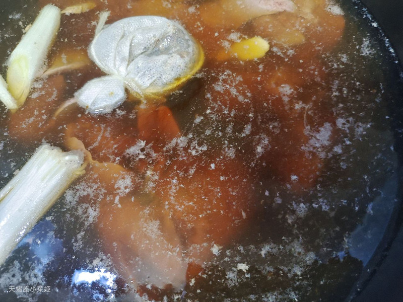 2.我这里放入了腐乳汁,就没有再加糖,不喜欢的宝子,可根据个人喜好,适当添加白糖,也可将腐乳汁替换成红曲粉。
