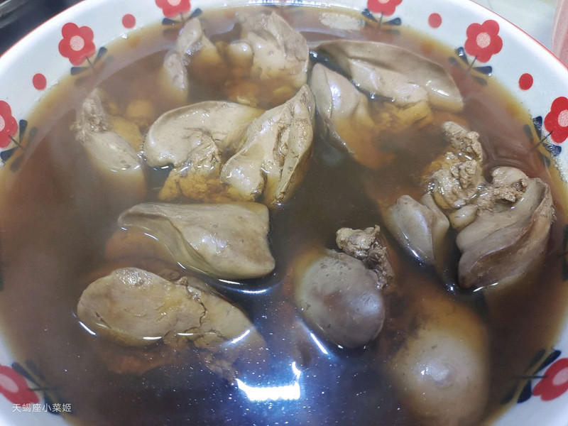 3.鸡肝煮制的时间不宜过长,这样会变硬,不好吃。可以用筷子扎一下,没有血水渗出,煮熟即可,关火捞出,放入碗中卤汤浸泡一小时以上更入味。