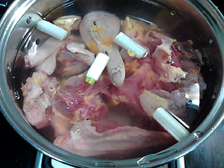 其实酸萝卜切成什么样并没有多大关系,只是有要求切条,咱就切条吧。鸭肉飞水,再同酸萝卜一起慢火熬煮,让酸萝卜的味道充分释放,慢慢渗入鸭肉中。一直煮到鸭肉软烂,再来试试汤的咸淡,好像已经完全可以不用加盐了,这一两个酸萝卜的盐分真够足。。。。