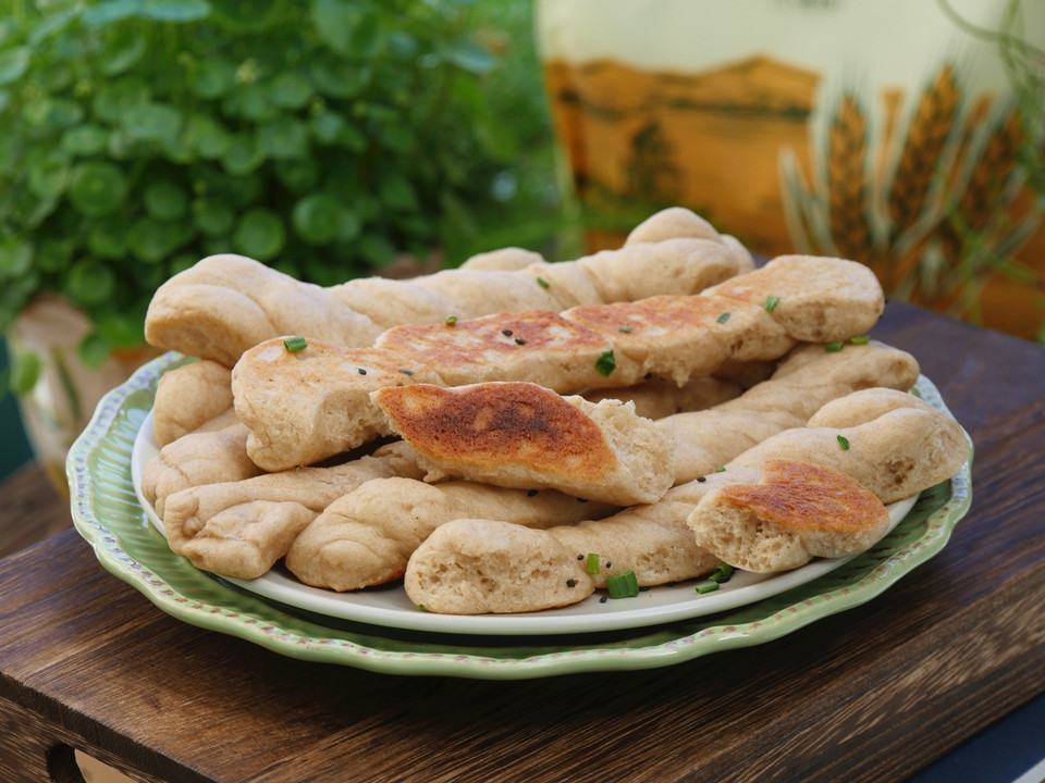 特别喜欢这款全麦煎卷子,底部酥脆,上面暄软,撒上葱花和黑芝麻,香气扑鼻。