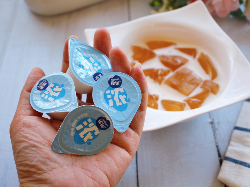 夏天天气热,分享一个夏日咖啡特调和清凉解暑的小甜品搭配,给炎炎夏日降降火气。这个淡奶龟苓膏拿铁,冰凉太爽了!既能提神醒脑又能降火除烦,很适合这个季节。这次我用到了雀巢特浓奶球,它0蔗糖添加,0植脂末,两倍的生牛乳浓缩给饮品添加了更浓郁的奶香,口感更加丝滑,简直是口味天花板!而且热量只要14.7卡,喝它没负担,太适合做咖啡和甜品啦!雀巢的特浓奶球真的非常百搭,对得起雀巢的金牌品质,用它再做一碗淡奶凉粉儿简直爽翻了!颜值超高Q弹爽滑的凉粉儿,浸在雀巢的特浓奶球中,口味简直是绝绝子,瞬间有了灵魂。而且这种小包装可以在家囤货,每颗只要一元钱,在家实现甜品自由!!!!