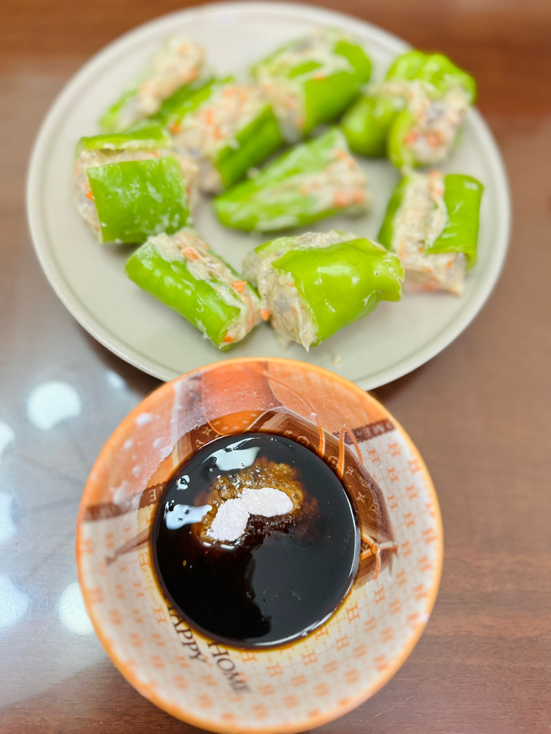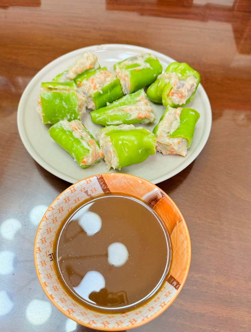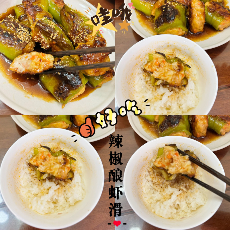 煎辣椒酿虾滑要全程小火不要心急,慢慢煎哈!