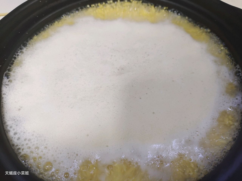 4.没有金汤花胶鸡汤料的宝子可以加入鸡汤和南瓜蓉代替。