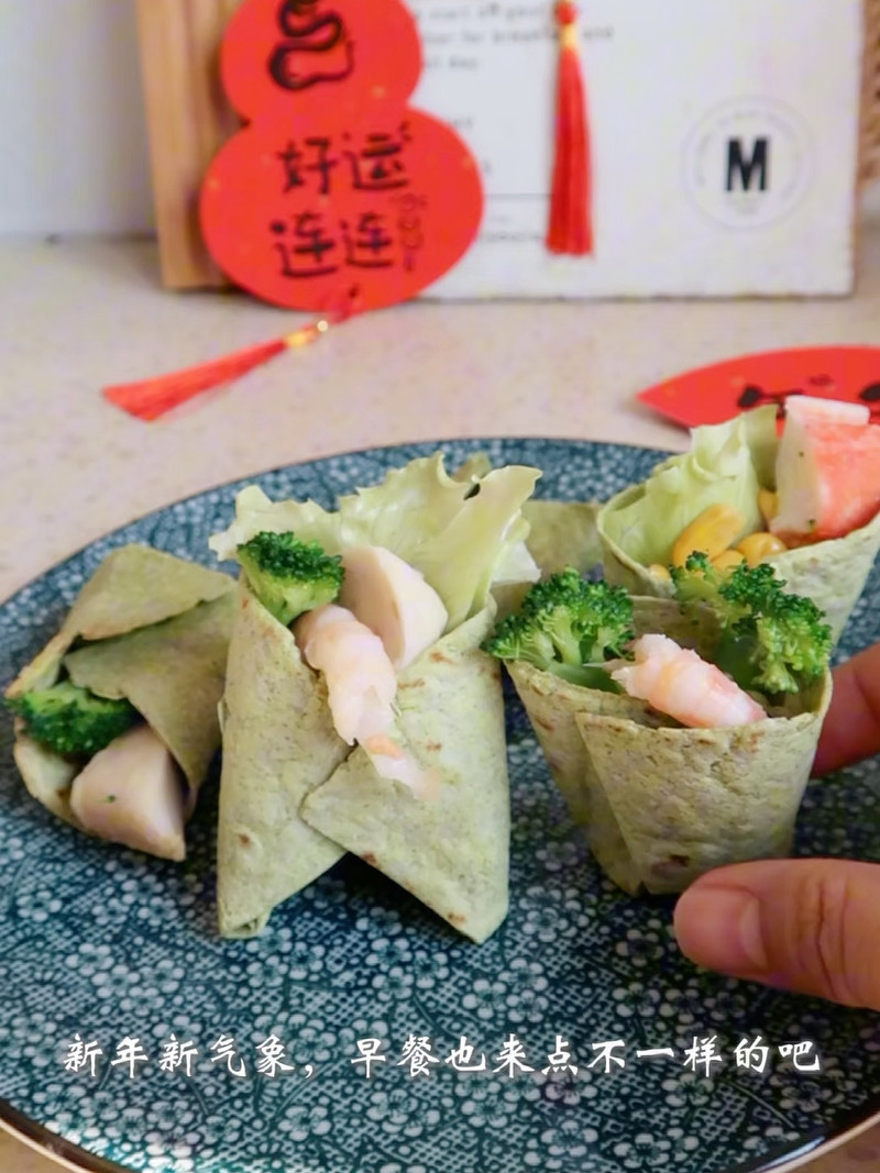 里面的馅料呢,简直就是一场味蕾的狂欢派对!你可以根据自己的口味搭配任何食材,配上新鲜的生菜、玉米粒,青菜,肉类,海鲜,每一口都是满满的幸福感。如果你是个素食主义者,别担心,这里还有全素的选项,保证让你吃得健康又满足。