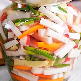 在重庆火锅吃过一款泡菜,念念不忘。自己复刻一下。虽然不正宗,但是口感很好 家里没有包菜了,所以没放。喜欢的蔬菜都可以放进去
