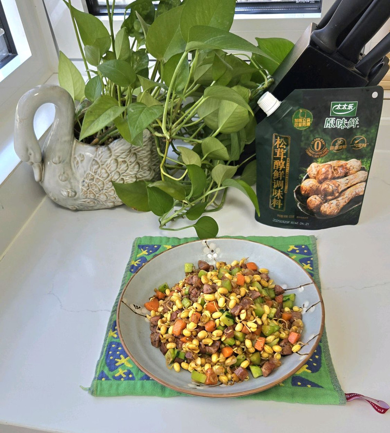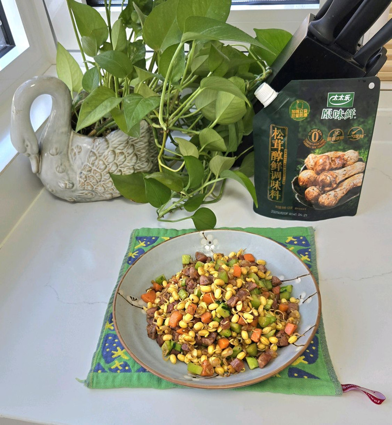 选用太太乐松茸醇鲜调味料一勺搞定 黑椒香肠搭配富硒豆嘴 黄瓜 胡萝卜,富豪丰富膳食纤维及高蛋白质的低卡餐,色彩多巴胺 健康又美味…
