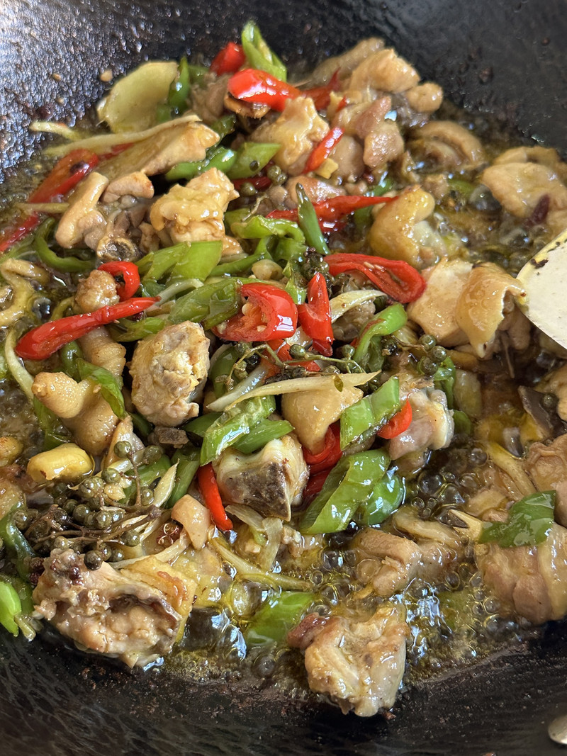 我的辣椒放太少了,鸡块也可以再切小点更入味哦!喜欢吃的试着做做。如果去掉鲜花椒就直接是尖椒鸡肉的做法。
