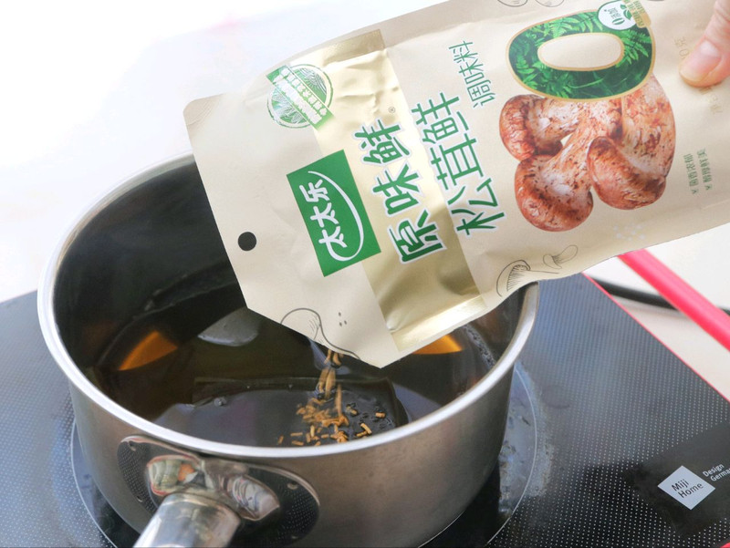 茶汤中加入太太乐松茸鲜——萃取自云南香格里拉的野生松茸,天然提鲜0负担,一点点就能让森系的馥郁香气浓缩进汤底。