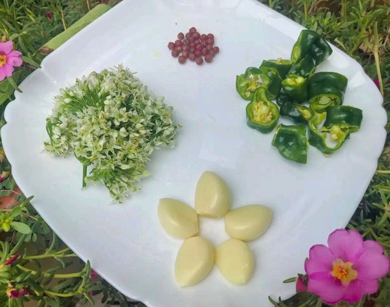 3、韭菜花可单独腌制或和干巴菌一同腌制也是美味。
