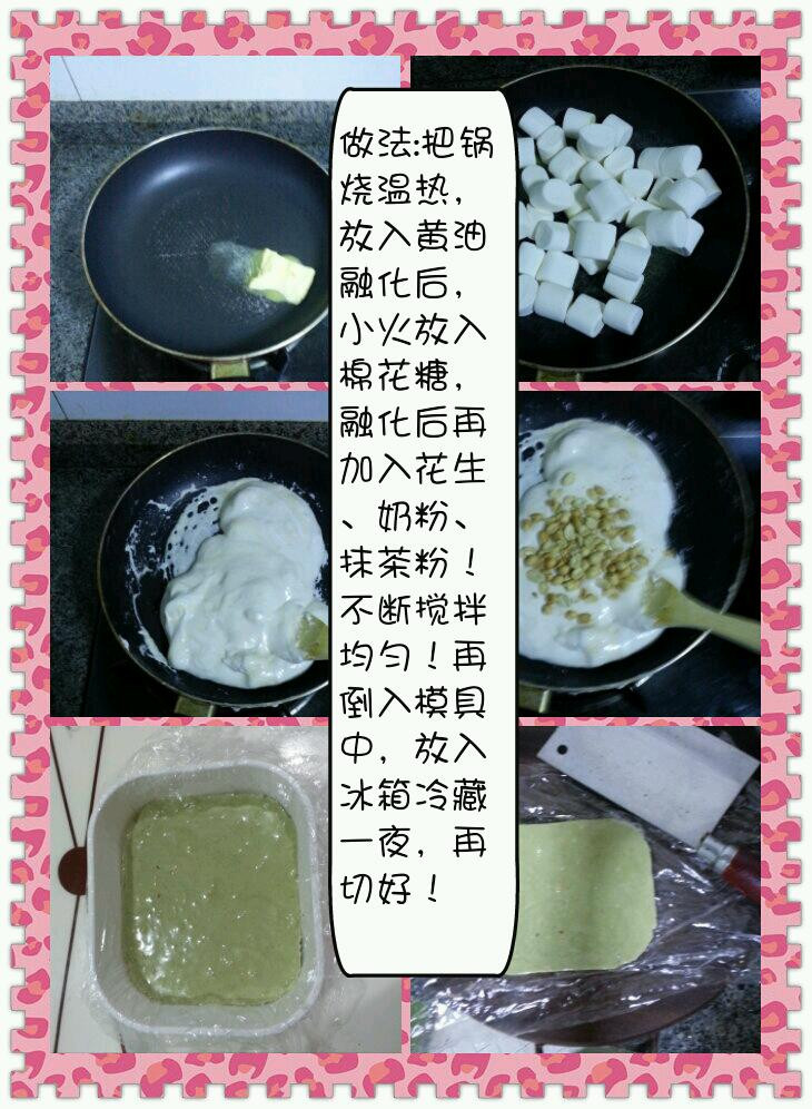 小时候特别爱吃牛轧糖,前段时间在网上看到一个方子,这次特意做了“抹茶牛轧糖”“巧克力牛轧糖”周末带回家给莎宝外公品尝!味道非常的好,抹茶的清香和牛奶的浓香完美结合!以后都可以自己做了!
