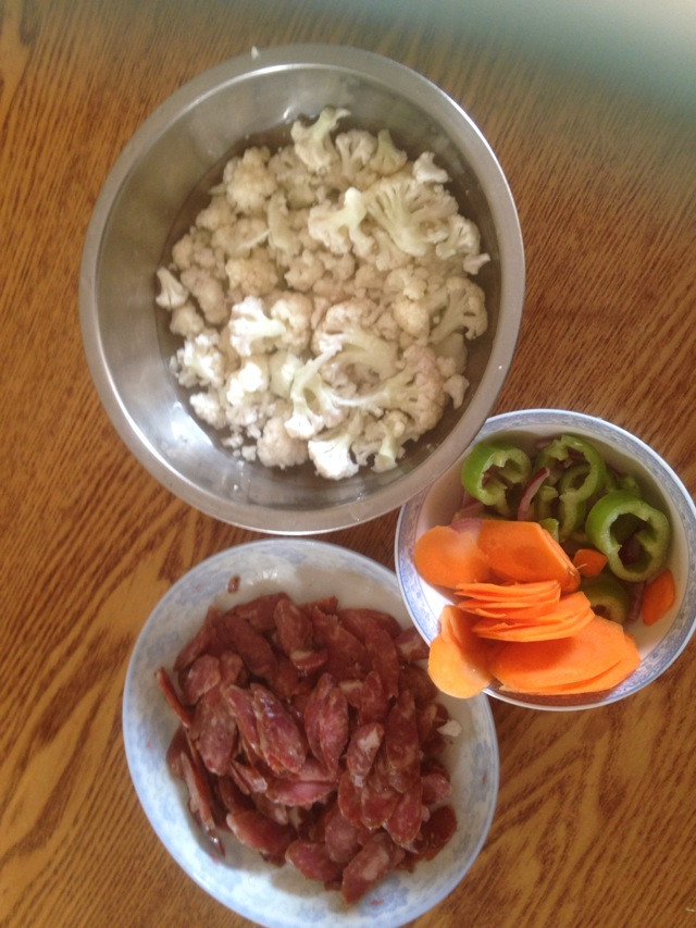 自从几年前女儿在朋友开的广东味饭馆吃过这个煲仔饭后,就喜欢上了这款美食,我特意学习了做法,逐渐根据自家食者情况口味加以改良,加入时令菜蔬,现在做起来得心应手,味道也固定下来,觉得这种风味很好。煲仔饭米饭一体,米吸收了油脂丶肉香丶菜香,油润香韧,肉菜熟而不软,口感香浓。做起来也方便,不像炒菜那样麻烦,好吃与否还依赖于炒菜人的水平。半小时内就搞定。家里有什么菜就可以放什么菜,不过不要放出水的菜。事实证明,放花菜还是很好吃的。不过,别忘了主角是香肠,别让菜的风头压过香肠了。
