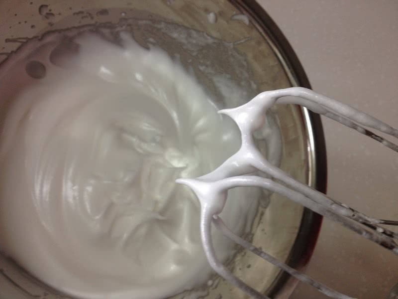 打到渐渐感觉到一点点的阻力,这个阻力是相较最开始而言的,并不是会有多强的阻力,这个需要慢慢体会。 打蛋头经过地方的纹路也不会轻易消失了,停下来,慢一点提起打蛋头,有尖尖的小尖,蛋白就打好了。打发蛋白的烹饪技巧