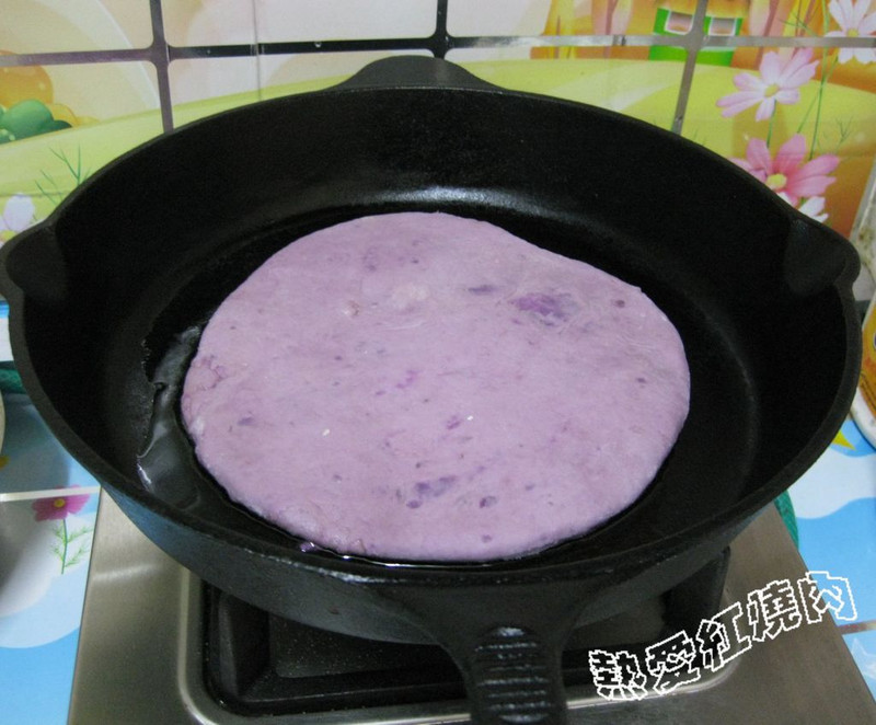 今天家里没主食了,想想吃啥好呢,翻看了冰箱还有两块蒸熟的紫薯,干脆用它和面做个紫薯烙饼得了,从没这样做过,结果吃起来效果很好,跟以前做过的紫薯炸丸子味道差不离,很好吃,而且因为面里加了紫薯,更加软乎了。也更加有营养了,真是营养与美味的结合。