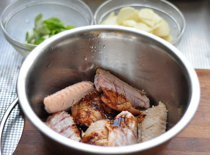 鸡翅要提前腌30分钟才能入味,土豆片不要切的太薄,2-3毫米最好。