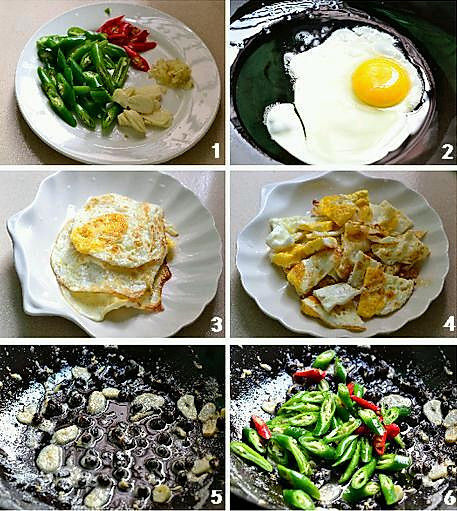1、将辣椒洗净,切成段,姜切末,蒜切片。 2、锅烧热,放油,打入鸡蛋两面煎熟透。 3、逐一煎好。 4、把煎好的蛋,切成小块。 5、锅内放少许油,加入姜蒜、豆豉炒香。 6、放入辣椒。