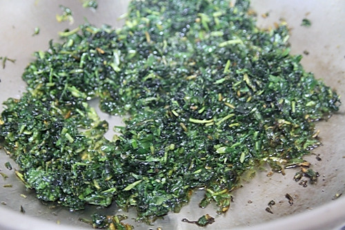 2、前一半的马兰头可以用炸的,但家里做的一般不会起大油锅,所以只要比平时多放些油慢煎,这时的火候要控制好,不要煎的时间太少,这样就没有足够的香气和微脆的口感,也不要煎太过了,不然会焦掉发苦;