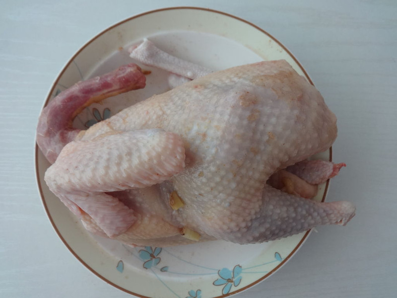 我买的鸡不是很大,电压力锅10分钟已经熟透了,在鸡熟后锅中还有少许酱汁,可以淋在斩好的鸡上。盐焗鸡粉已经够咸了,所以不用再添加盐。