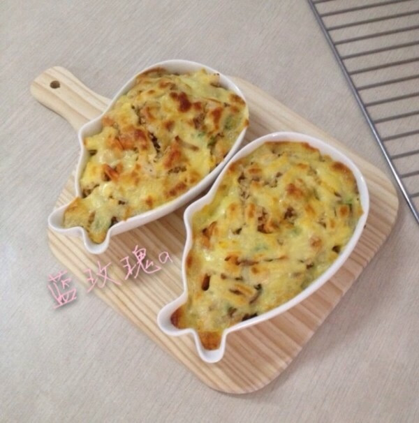 芝士焗饭算是我的最爱吧。因为要减肥,时常都会不吃饭。但是有了这个焗饭,我想我已经忘记了要减肥…