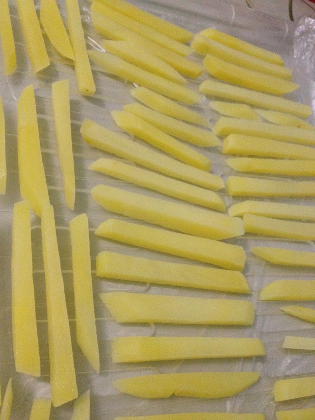 一定要用厨房吸水纸吸干土豆上的水,没有吸纸也要尽量晾干水