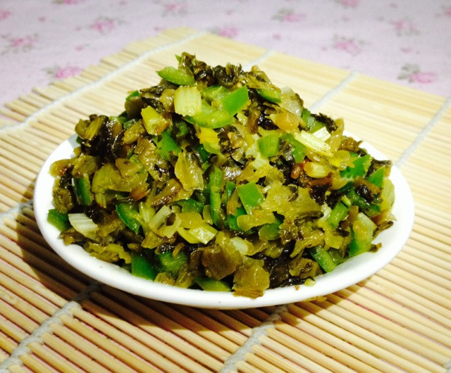 夏季喝粥吃饭必备的开胃下饭菜--青椒丁炒酸菜末的烹饪技巧